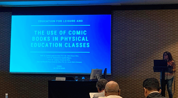 This project aims at the creation of a new comic book application for Elementary Physical Education classes, with the purpose of education for leisure. An existing app developed by Prof. Dr. Cláudio Kirner, called Flaras, was adapted for this project. This research was composed by bibliografic and field research (qualitative studies). Two pedagogical experiences were done in an Elementary/Junior High education public school in Piracicaba city/SP/Brazil. Both pedagogical experiences were considered effective for Physical Education classes and education for leisure. The students showed positive views about dance, sports, games, gym, fight, elements of body culture. The project was executed by Methodist University of Piracicaba (UNIMEP)/Brazil and coordinated by Prof. Dr. Cinthia Lopes da Silva. The project was funded by FAPESP - Brazilian research agency, process 201713279-4.